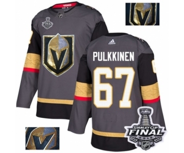 Men Adidas Vegas Golden Knights #67 Teemu Pulkkinen Authentic Gray Fashion Gold 2018 Stanley Cup Final NHL Jersey