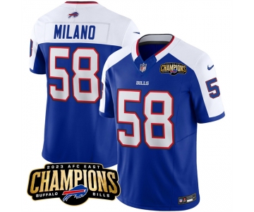 Men's Buffalo Bills #58 Matt Milano Blue White 2023 F.U.S.E. AFC East Champions With 4-star C Ptach Football Stitched JerseyV