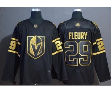 Men's Golden Knights #29 Marc-Andre Fleury Black Gold Authentic Stitched Hockey Jersey