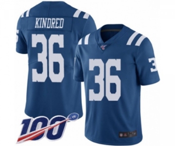 Men's Indianapolis Colts #36 Derrick Kindred Limited Royal Blue Rush Vapor Untouchable 100th Season Football Jersey