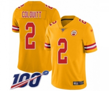 Men's Kansas City Chiefs #2 Dustin Colquitt Limited Gold Inverted Legend 100th Season Football Jersey