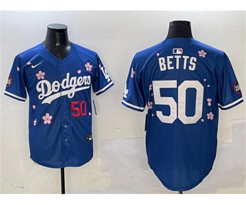 Men's Los Angeles Dodgers #50 Mookie Betts Royal 2025 Tokyo Series Limited Stitched Baseball Jersey