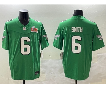 Men's Philadelphia Eagles #6 DeVonta Smith Green 2025 Super Bowl LIX Patch F.U.S.E. Throwback Vapor Untouchable Limited Stitched Football Jersey