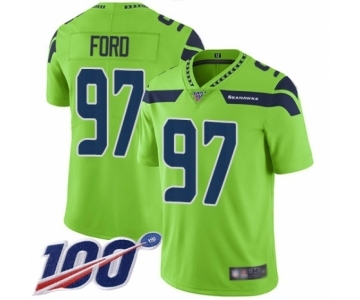 Men's Seattle Seahawks #97 Poona Ford Limited Green Rush Vapor Untouchable 100th Season Football Jersey