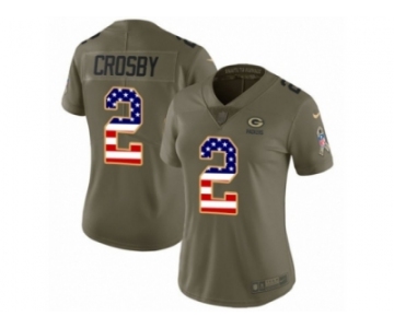 Women Nike Green Bay Packers #2 Mason Crosby Limited Olive USA Flag 2017 Salute to Service NFL Jersey