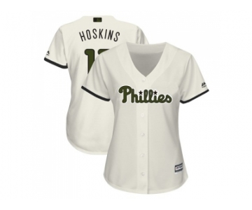 Women Philadelphia Phillies #17 Rhys Hoskins Cream 2018 Memorial Day Cool Base Stitched MLB Jersey