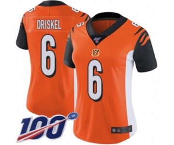 Women's Cincinnati Bengals #6 Jeff Driskel Orange Alternate Vapor Untouchable Limited Player 100th Season Football Jersey