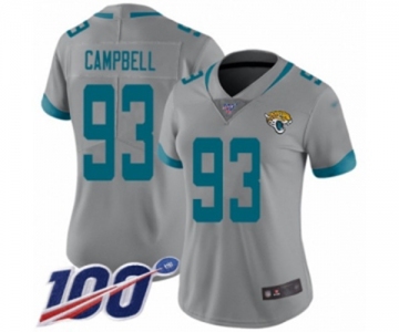 Women's Jacksonville Jaguars #93 Calais Campbell Silver Inverted Legend Limited 100th Season Football Jersey