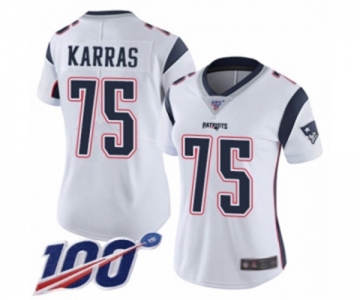 Women's New England Patriots #75 Ted Karras White Vapor Untouchable Limited Player 100th Season Football Jersey