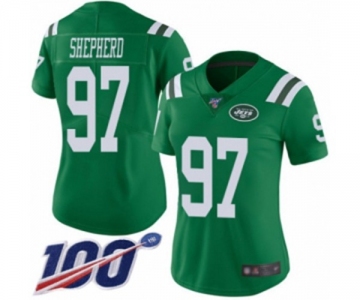 Women's New York Jets #97 Nathan Shepherd Limited Green Rush Vapor Untouchable 100th Season Football Jersey