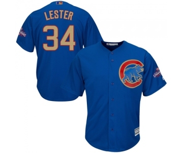 Youth Majestic Chicago Cubs #34 Jon Lester Authentic Royal Blue 2017 Gold Champion Cool Base MLB Jersey