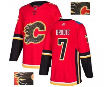 Calgary Flames #7 TJ Brodie Authentic Red Fashion Gold Hockey Jersey