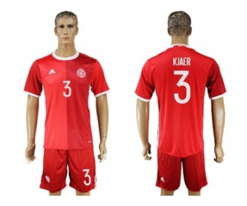Danmark #3 Kjaer Red Home Soccer Country Jersey