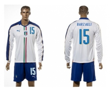 Italy #15 Barzagli White Away Long Sleeves Soccer Country Jersey