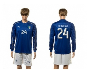 Italy #24 Florenzi Blue Home Long Sleeves Soccer Country Jersey1