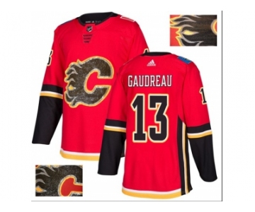 Men Adidas Calgary Flames #13 Johnny Gaudreau Red Home Authentic Fashion Gold Stitched NHL Jersey