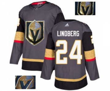 Men Adidas Vegas Golden Knights #24 Oscar Lindberg Authentic Gray Fashion Gold NHL Jersey