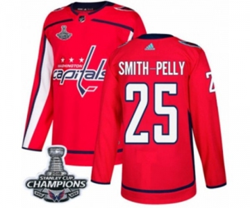 Men Adidas Washington Capitals #25 Devante Smith-Pelly Premier Red Home 2018 Stanley Cup Final Champions NHL Jersey