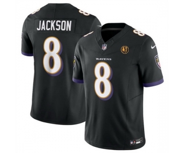 Men Baltimore Ravens #8 Lamar Jackson Black 2023 F U S E With John Madden Patch Vapor Limited Football Jersey
