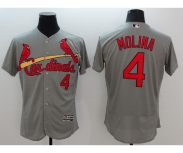Men St. Louis Cardinals #4 Yadier Molina Majestic grey Flexbase Authentic Collection Player Jersey