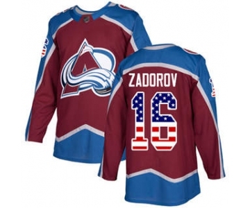 Men's Avalanche #16 Nikita Zadorov Burgundy Home USA Flag Stitched Hockey Jersey