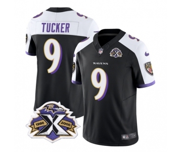 Men's Baltimore Ravens #9 Justin Tucker Black White 2023 F.U.S.E With Patch Throwback Vapor Limited Stitched Jersey