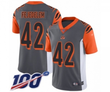 Men's Cincinnati Bengals #42 Clayton Fejedelem Limited Silver Inverted Legend 100th Season Football Jersey