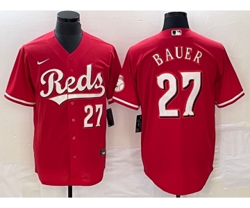 Men's Cincinnati Reds #27 Trevor Bauer Number Red Stitched MLB Cool Base Nike Jersey
