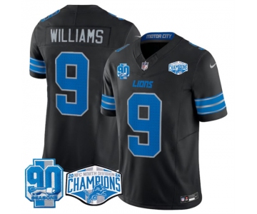 Men's Detroit Lions #9 Jameson Williams Black 2024 NFC North Champions 90th Anniversary Patch F.U.S.E. Vapor Limited Stitched Jersey