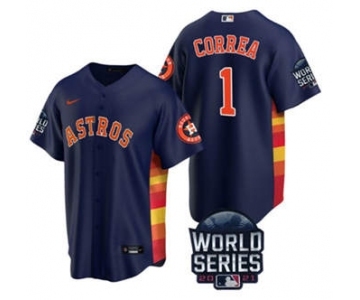 Men's Houston Astros #1 Carlos Correa 2021 Navy World Series Cool Base Stitched Baseball Jersey