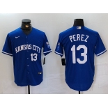 Men's Kansas City Royals #13 Salvador Perez Blue KC Cool Base Stitched Jersey