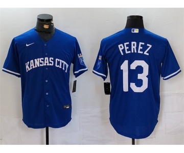 Men's Kansas City Royals #13 Salvador Perez Royal Cool Base Stitched Jersey