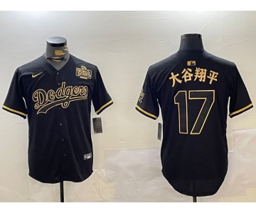 Men's Los Angeles Dodgers #17 太平翔谷 Black Gold 2024 World Series Champions Cool Base Stitched Baseball Jersey