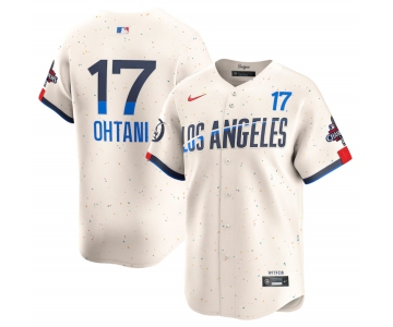 Men's Los Angeles Dodgers #17 Shohei Ohtani Cream 2024 World Series Champions City Connect Limited Stitched Baseball Jersey