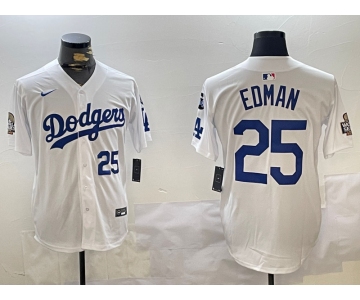 Men's Los Angeles Dodgers #25 Tommy Edman White 2024 World Series With Fernando Memorial Patch Home Limited Stitched Baseball Jersey