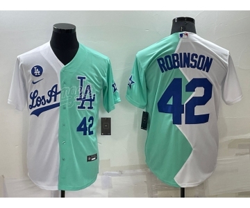Men's Los Angeles Dodgers #42 Jackie Robinson White Green Number 2022 Celebrity Softball Game Cool Base Jersey1