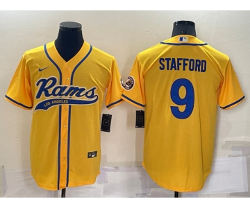 Men's Los Angeles Rams #9 Matthew Stafford Yellow Cool Base Stitched Baseball Jersey