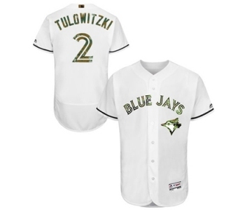 Men's Majestic Toronto Blue Jays #2 Troy Tulowitzki Authentic White 2016 Memorial Day Fashion Flex Base MLB Jersey