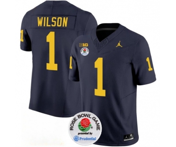 Men's Michigan Wolverines #1 Roman Wilson 2023 F.U.S.E. Navy Blue Rose Bowl Patch Stitched Jersey