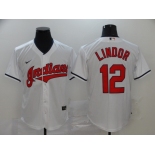 Men's Nike Cleveland Indians #12 Francisco Lindor White 2020 Stars & Stripes 4th of July Jersey