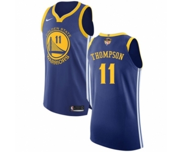 Men's Nike Golden State Warriors #11 Klay Thompson Authentic Royal Blue Road 2018 NBA Finals Bound NBA Jersey - Icon Edition