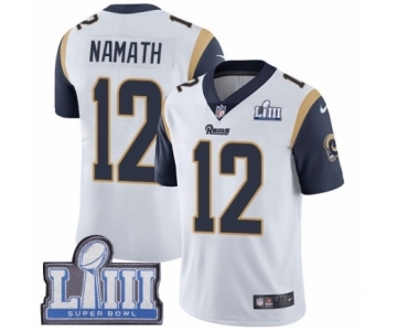 Men's Nike Los Angeles Rams #12 Joe Namath White Vapor Untouchable Limited Player Super Bowl LIII Bound NFL Jersey