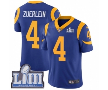 Men's Nike Los Angeles Rams #4 Greg Zuerlein Royal Blue Alternate Vapor Untouchable Limited Player Super Bowl LIII Bound NFL Jersey