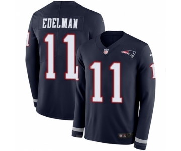 Men's Nike New England Patriots #11 Julian Edelman Limited Navy Blue Therma Long Sleeve NFL Jersey