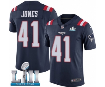 Men's Nike New England Patriots #41 Cyrus Jones Limited Navy Blue Rush Vapor Untouchable Super Bowl LII NFL Jersey