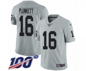 Men's Oakland Raiders #16 Jim Plunkett Limited Silver Inverted Legend 100th Season Football Jersey