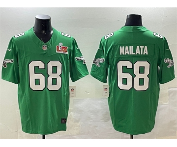 Men's Philadelphia Eagles #68 Jordan Mailata Green 2025 Super Bowl LIX Patch F.U.S.E. Throwback Vapor Untouchable Limited Stitched Football Jersey