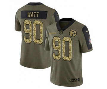 Men's Pittsburgh Steelers #90 T.J. Watt 2021 Olive Camo Salute To Service Limited Stitched Football Jersey