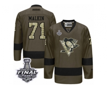 Men's Reebok Pittsburgh Penguins #71 Evgeni Malkin Authentic Green Salute to Service 2017 Stanley Cup Final NHL Jersey