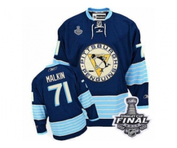 Men's Reebok Pittsburgh Penguins #71 Evgeni Malkin Premier Navy Blue Third Vintage 2017 Stanley Cup Final NHL Jersey